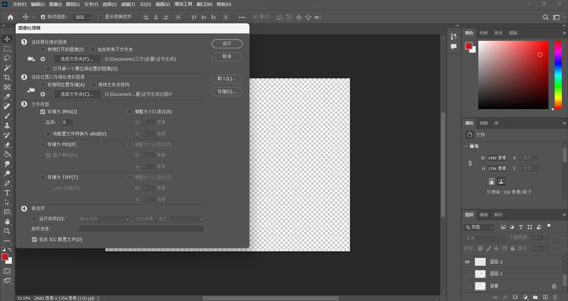 那么问题来了,这里导出的都是 PSD 文件,我们该如何把他变成图片呢?我们回到 Photoshop 中,再次点击 文件,然后依次点击 脚本、图像处理器。